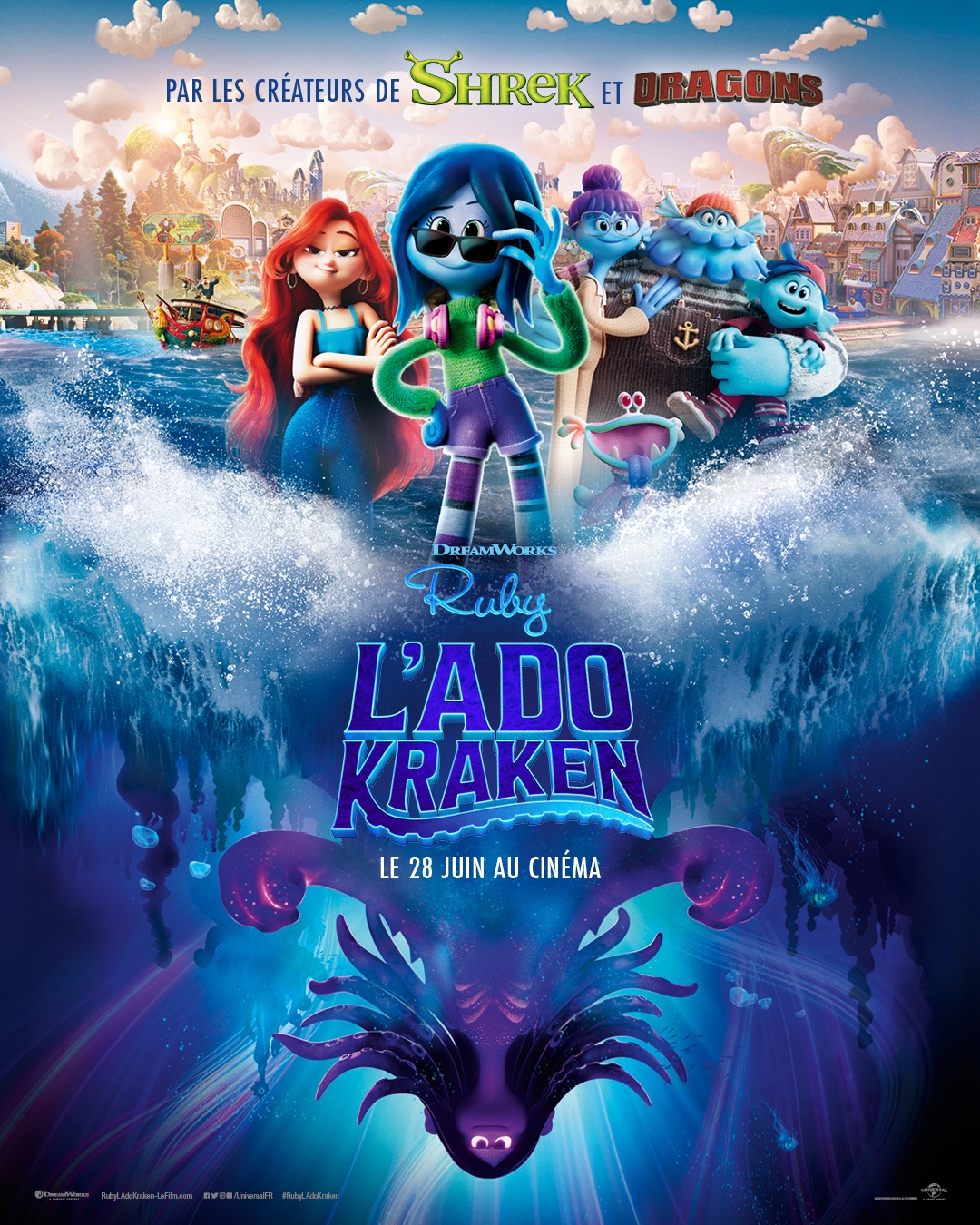Âgée de 16 ans, Ruby Gillman est aussi maladroite qu’adorable. Elle tente désespérément de trouver sa place au lycée d’Oceanside, où elle a l’impression d’être totalement transparente. Elle donne des cours de soutien en maths à un jeune skater dont elle est secrètement amoureuse, mais qui ne semble admirer chez elle que sa capacité à résoudre des équations. Et de toute façon, elle ne peut pas fréquenter les élèves les plus intéressants du lycée, car sa mère qui la surprotège, lui a formellement interdit de se baigner dans l’océan. Mais le jour où elle lui désobéit et brise cette règle d’or, elle découvre qu’elle est la descendante directe de la lignée des reines guerrières Kraken, et qu’elle est destinée à monter sur le trône jusque-là occupé par sa grand-mère : la reine guerrière des Sept mers. Les Kraken ont prêté serment de protéger les océans du monde entier de la cupidité et de la vanité des sirènes, leurs ennemies jurées. Le seul véritable problème pour Ruby est qu’elle va donc devoir s’opposer à Chelsea, la nouvelle la plus jolie et la plus populaire du lycée qui se trouve justement être une sirène. Ruby devra alors embrasser son destin et s’imposer pour protéger ceux qu’elle aime le plus.